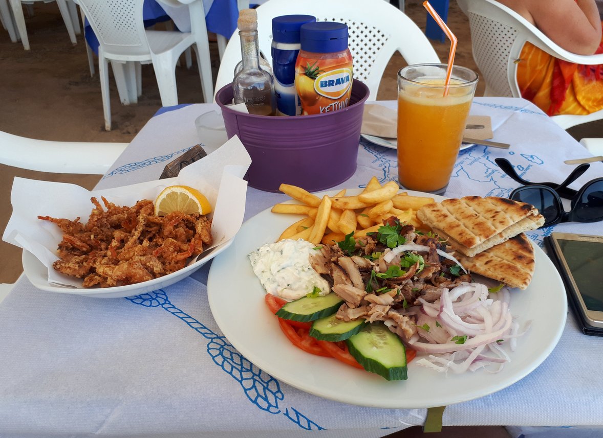 There are several cafes on Paralia Agios Pavlos, their prices are higher than the average for the island, but the views and atmosphere are worth it.