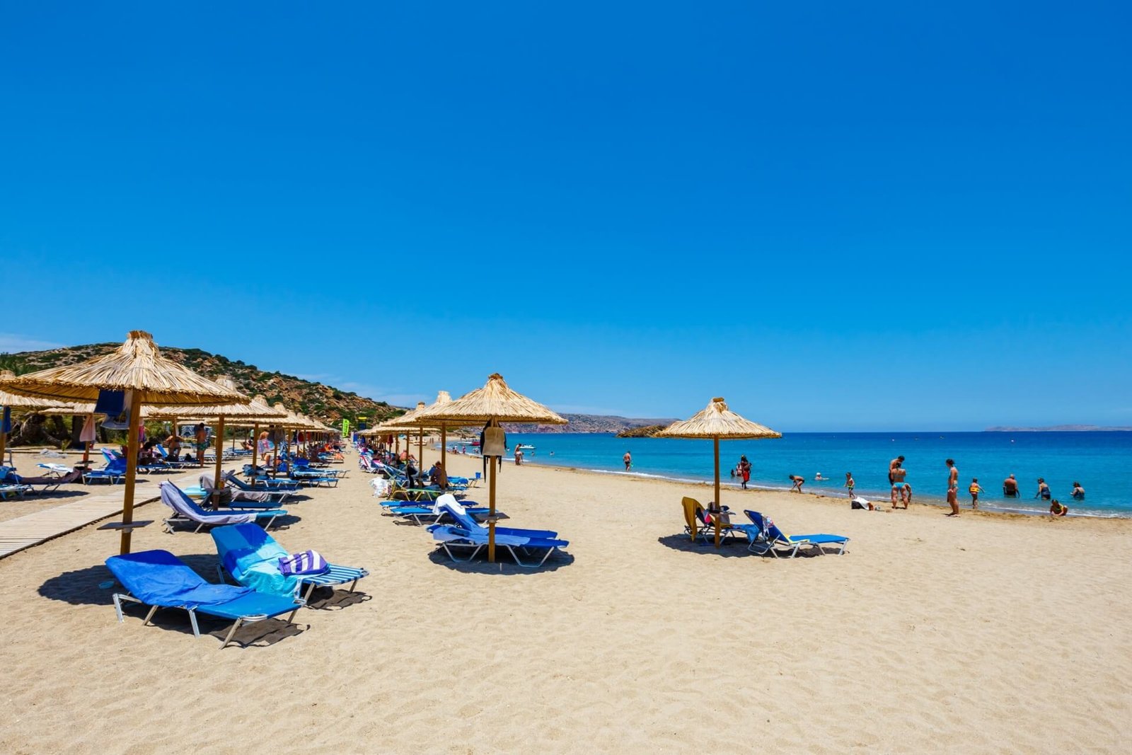 Today, the sandy beach strip is equipped with necessary infrastructure: sunbeds, toilets, and cafes. Palm Beach is a daytime visit beach – there are no places to stay overnight. Visitors come by car, for which parking is available. The time spent against the backdrop of incredibly beautiful views will likely be the most romantic episode of your stay in Crete.