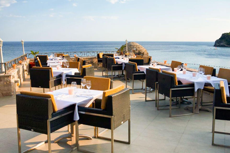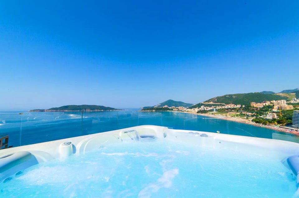 This luxurious complex is located on the first coastline and has a private sandy beach with sun loungers and umbrellas. The spacious rooms are highly appreciated by visitors. It is located near the historic part of Budva. The spa complex is impressive with its service and design, decorated with Swarovski stones. The overall interior is modern, with expensive new furniture.