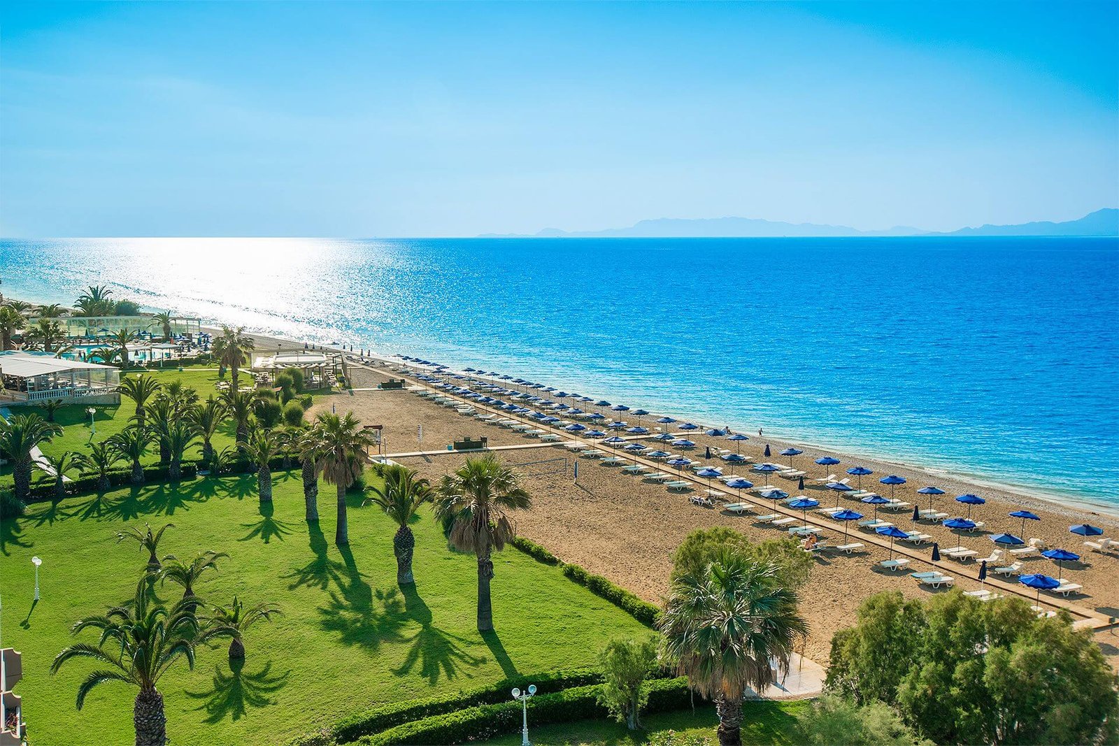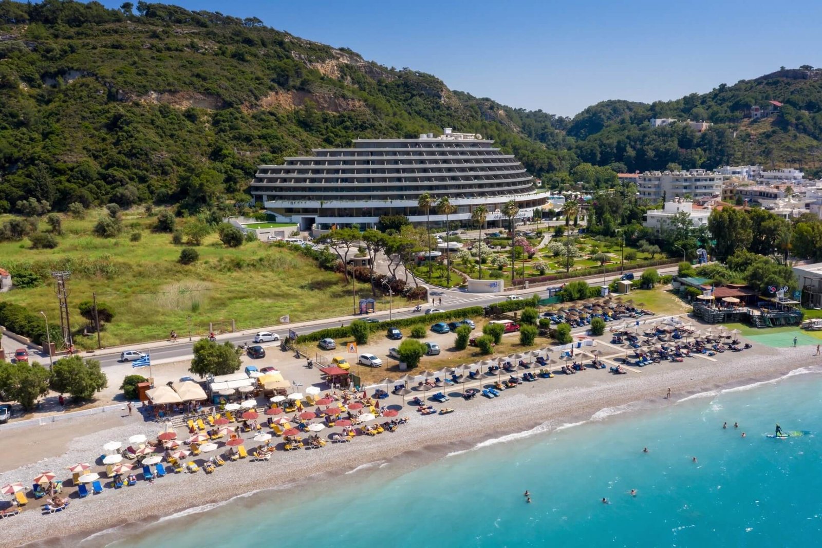 Located on the southeast of Rhodes, Kiotari has gained popularity recently. In the 1990s, it was almost unknown to tourists. The beach is clean and well-maintained, with sand and some pebbles. All amenities for relaxation are available, including loungers, umbrellas, showers, and toilets. There are many small taverns and cafes for snacks.