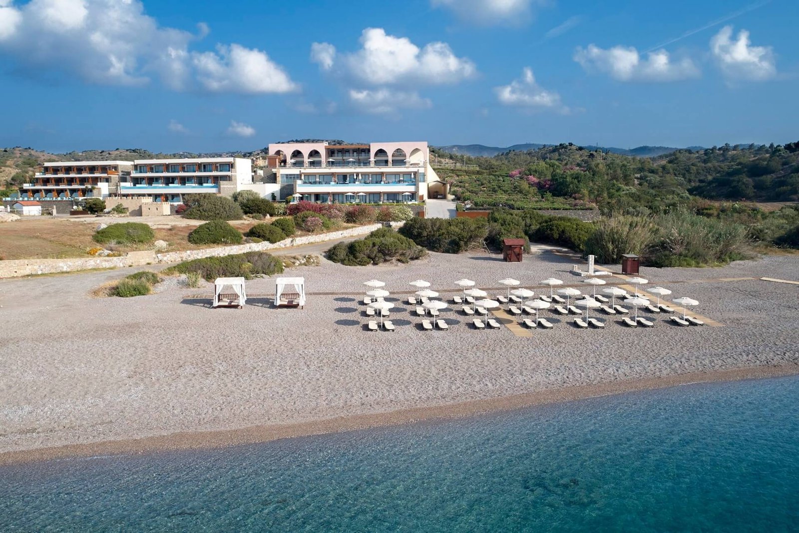 - Karteros: Equipped for relaxation, with a gentle shore but waves in windy weather.