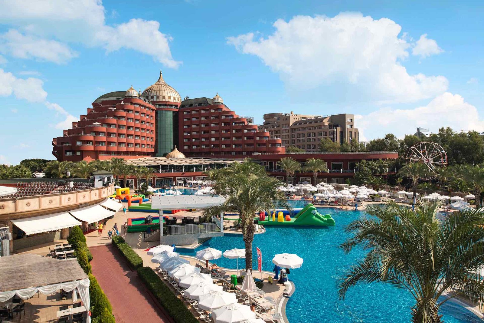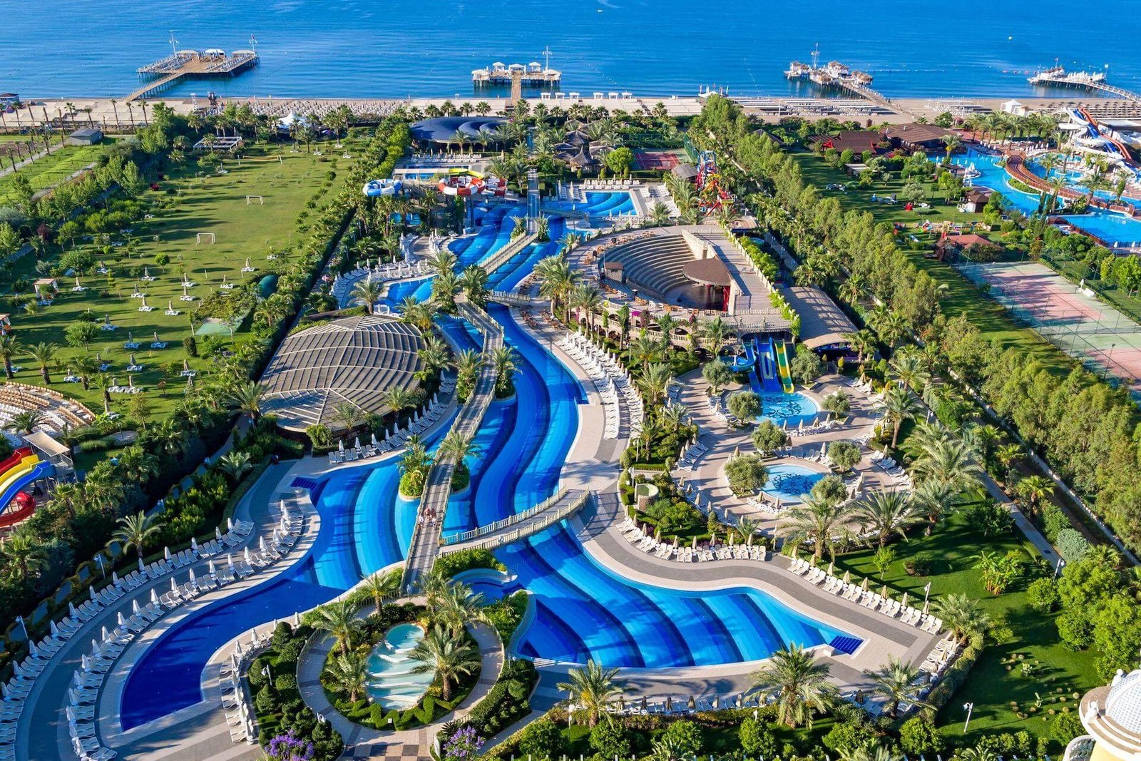 This is an excellent choice for those seeking a secluded seaside vacation with exceptional service. Located in the trendy Lara district near the eponymous beach. Travelers are provided with a secluded rest and the highest level of service. Guests have access to a large outdoor pool, an indoor pool with a waterslide, and 3 jacuzzis. You can rent a paddle boat, jet ski, or yacht, fly with a parachute, or ride on “banana” boats.