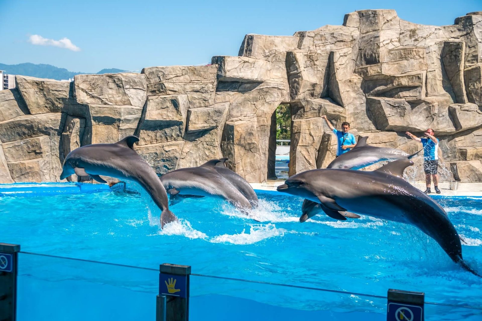 The popularity of the dolphinarium is enormous, so it’s better to book tickets in advance, especially during the peak tourist season. And even more so, you should register in advance if you want to swim with the dolphins for a quarter of an hour. Eight dolphins participate in the show, performing up to 30 acts – dancing, working with hoops and balls, and performing other entertaining tricks.