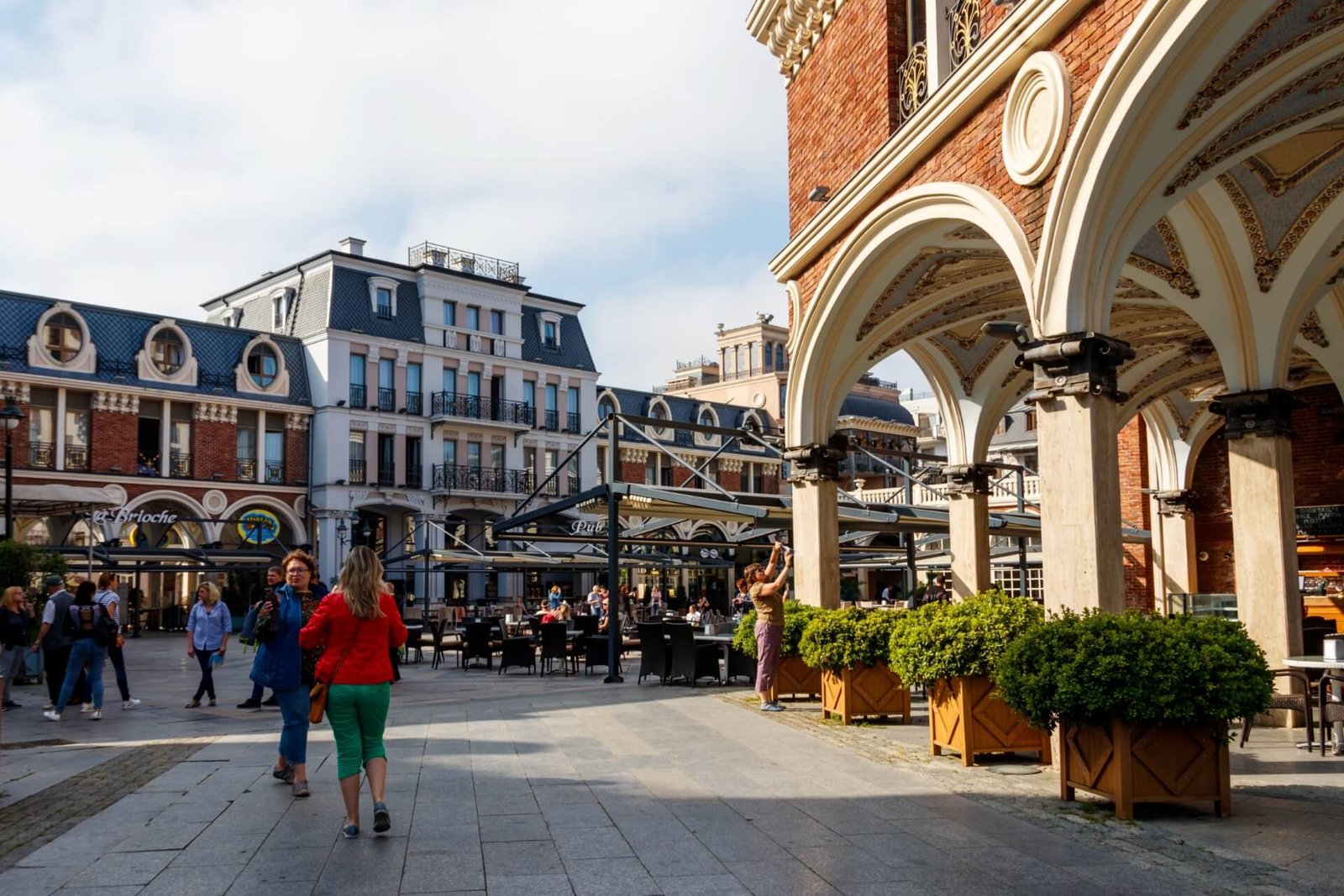 The buildings surrounding the square are decorated with stained glass, mosaics, and artistic painting. There are several hotels, luxurious bars, clubs, and restaurants here. Work on the square’s exterior was completed in 2010, but Piazza looks like it has been there for centuries. A very picturesque place.