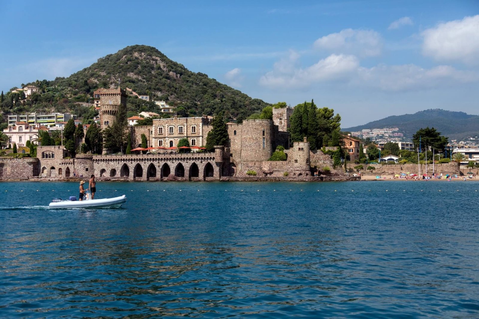 The enchanting aromas of pine trees, mimosas, and the fresh sea breeze fill the air with pleasant fragrances. Among the resort’s attractions, the 14th-century Château de la Napoule stands out. This architectural monument, built on the seashore surrounded by lush plantings and a garden complex, serves as a museum, gallery, and cultural center.