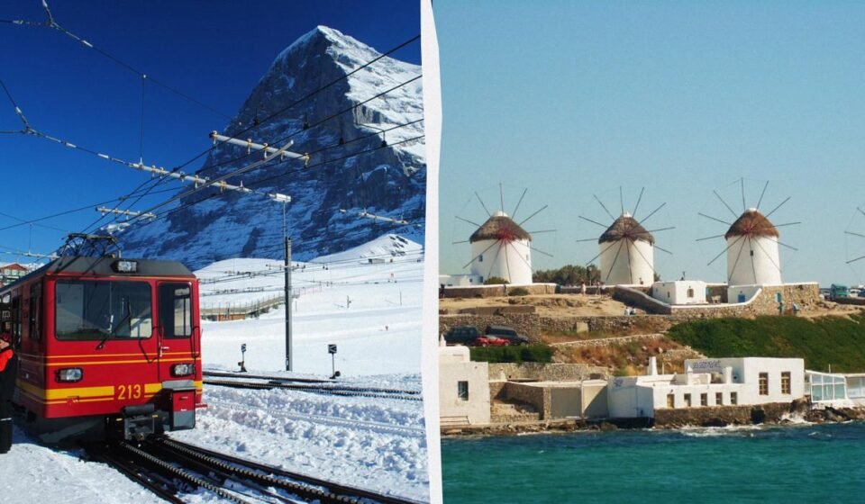 The Swiss Alps are not only admired for their natural beauty, but also for their engineering achievements: from the Grindelwald Valley, you can climb to Europe’s highest railway station at an altitude of 3,454 meters on the Jungfrau Pass. The train and cable car take you through the heart of the Eiger Mountain, offering breathtaking views of glaciers and four-thousand-meter peaks. At the summit, you’ll find a realm of eternal snow, panoramic platforms, and a labyrinth of ice. It’s one of the most impressive railway adventures on the planet.