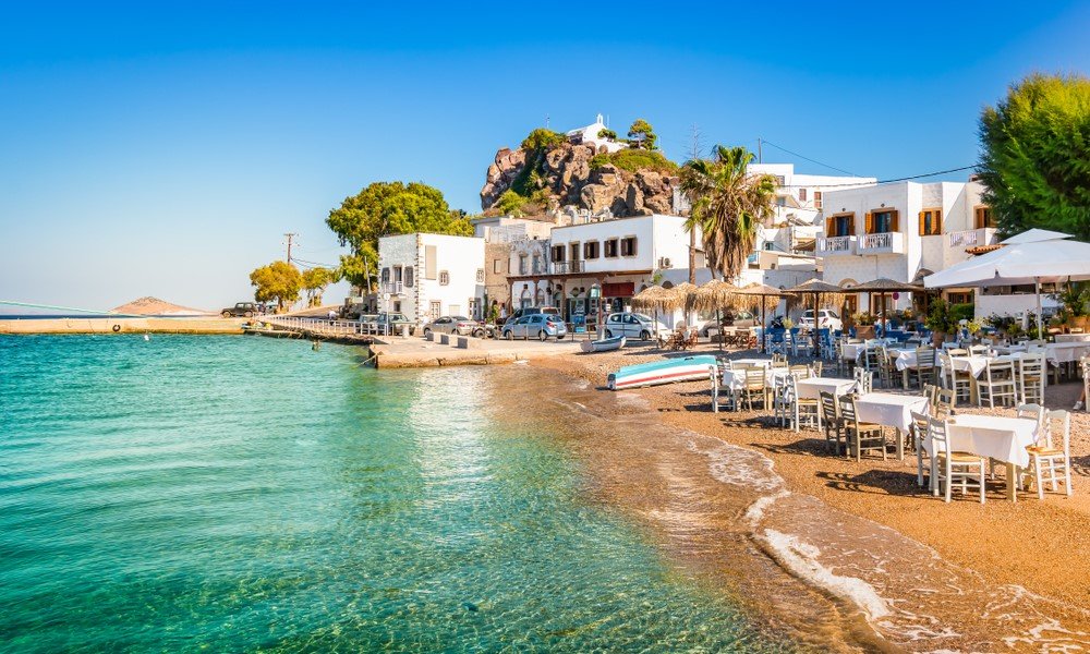 But Patmos is not only about religion. The island is perfect for riding a moped, exploring its cozy beaches, and sitting in a seaside restaurant in the evenings, with tables right by the water or even in it.