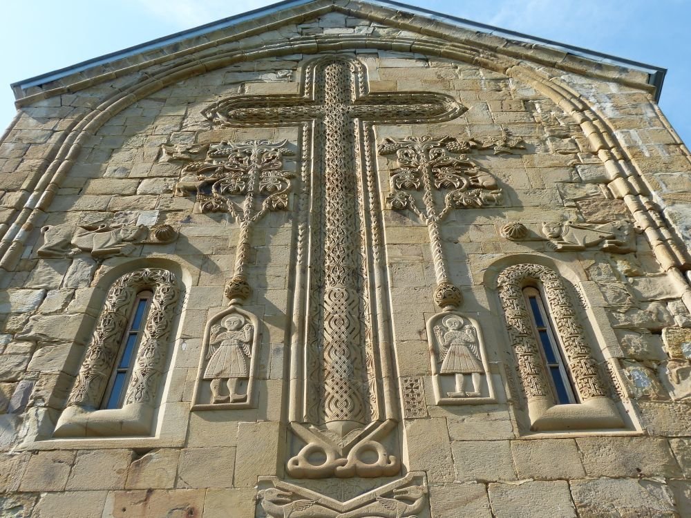 If we talk about the architecture of the Assumption Church, then it should be noted that such a solution is very rare for the XVII century – in all of Georgia there are only 3 churches with such architecture. The building has classical proportions and a dome, and the exterior walls are decorated with carvings with crosses, cherubs, people, animals, birds, and vines. The text on the exterior wall indicates that the building was built by Mdivanbeg Bardzim.