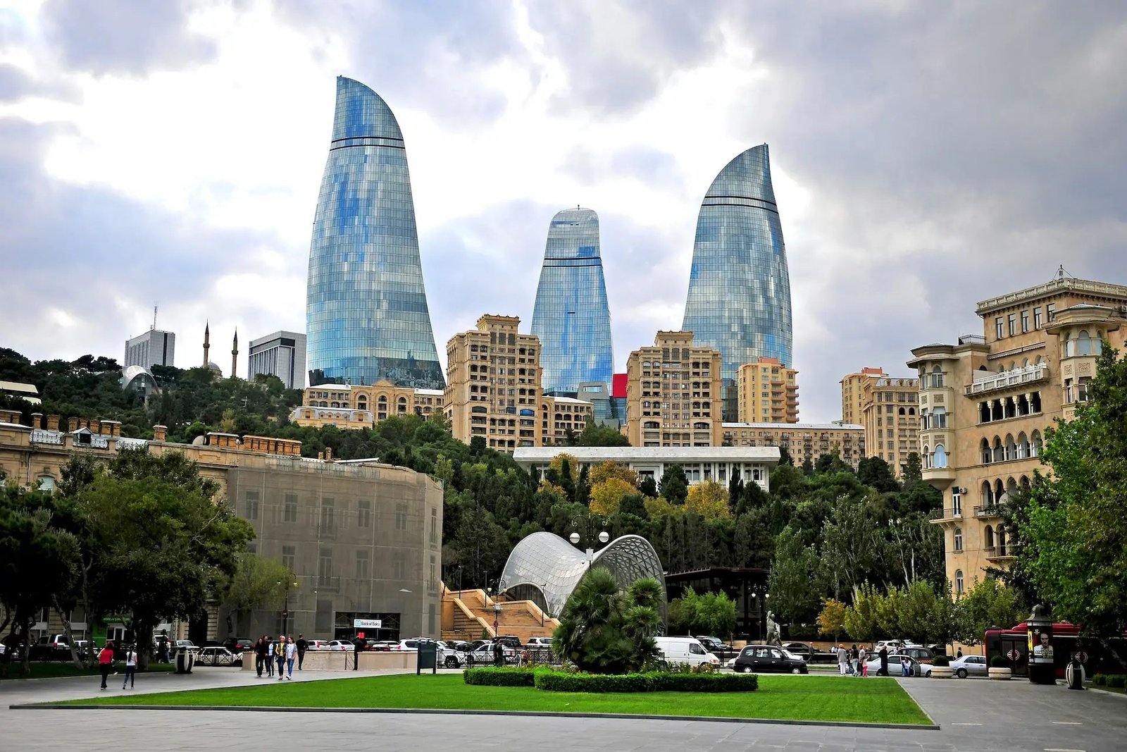Flame Towers is a multi-purpose complex consisting of three skyscrapers in the shape of three tongues of flame. The high-rises are the largest structures in the republic. The towers reach a height of 200 meters. They were built on a hilltop overlooking the Caspian Sea with a view of Baku Bay and the Old City of Icheri Sheher.