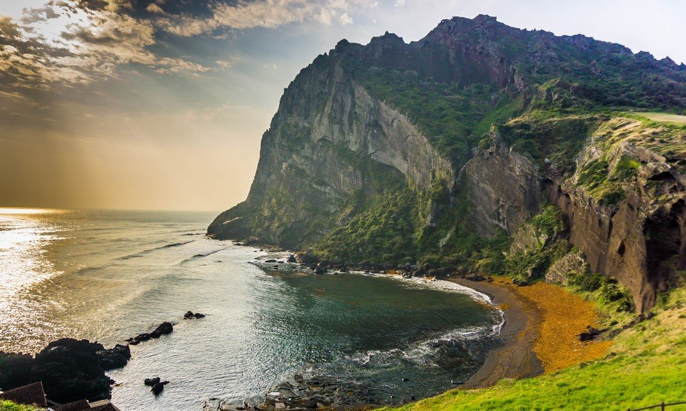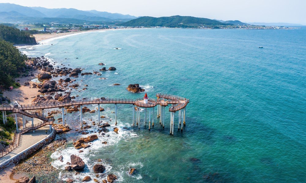 One of the best beaches on the eastern coast of the Sea of Japan is Songjeong Beach. Here, an episode of the drama “True Beauty” was filmed. The indigo-colored sea and silver sand leave no one indifferent. The beach is surrounded on three sides by Geumsan Mountain, and on the fourth side stretches the sea, creating a stunningly beautiful landscape. From Geumsan Mountain, you can enjoy a beautiful view of the sunrise. People come here not only to swim and sunbathe but also to engage in water sports: kitesurfing, windsurfing, snorkeling, sailing, yachting, and water skiing are popular here.
