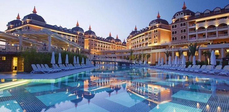 Located right on the Mediterranean coast, bordering a private beach. Here you can fully experience the Turkish flavor, thanks to the rich interior decoration of the premises. There are swimming pools – outdoor and indoor.