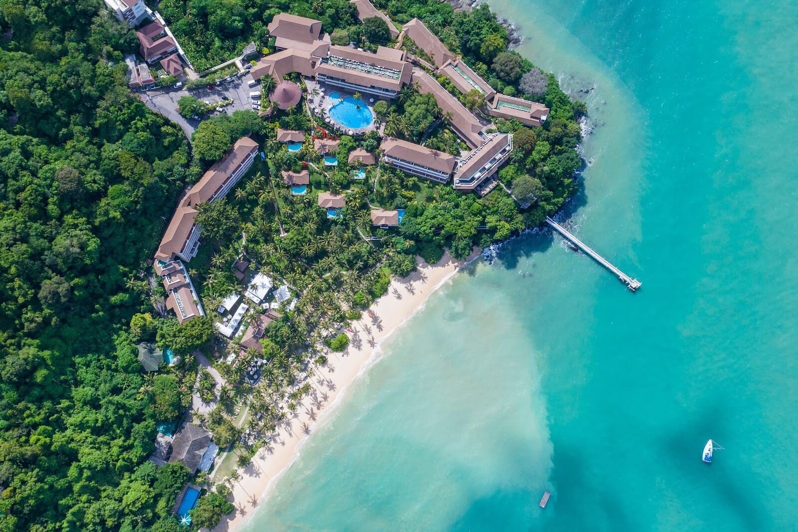 This resort complex looks extremely picturesque due to its location on a mountain slope. It has its own beach with a “twist”: nearby, underwater, hides the Naka Lai coral reef, one of the most flourishing along the coast of Phuket.