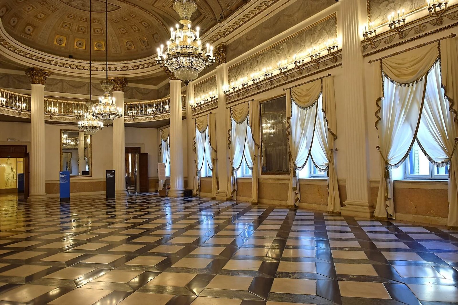 All three floors display items that surrounded the lives of wealthy Venetians in the 18th century. Now, the Throne, Ballroom, Lazzarini, Reception, and Tiepolo halls have been restored and opened to visitors. Here you can see beautiful carved furniture made from expensive types of wood, crystal chandeliers, mirrors, ceiling frescoes, and luxurious ornaments typical of the era.