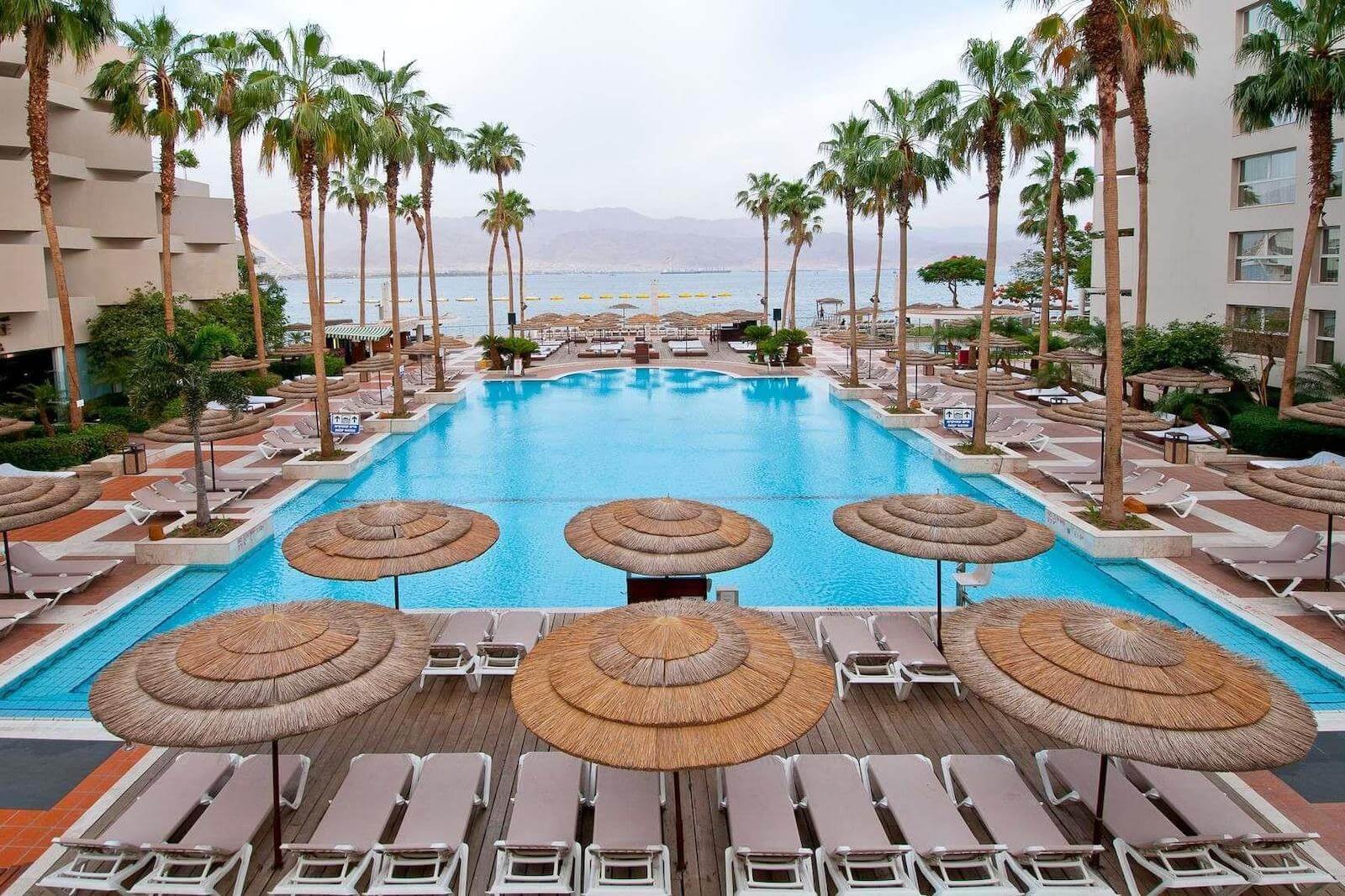 The building has 256 rooms. Among them are rooms with views of the Yacht Pier and the Edom Mountains. New neat plumbing in the bathrooms, free Wi-Fi, balconies, and necessary furniture.