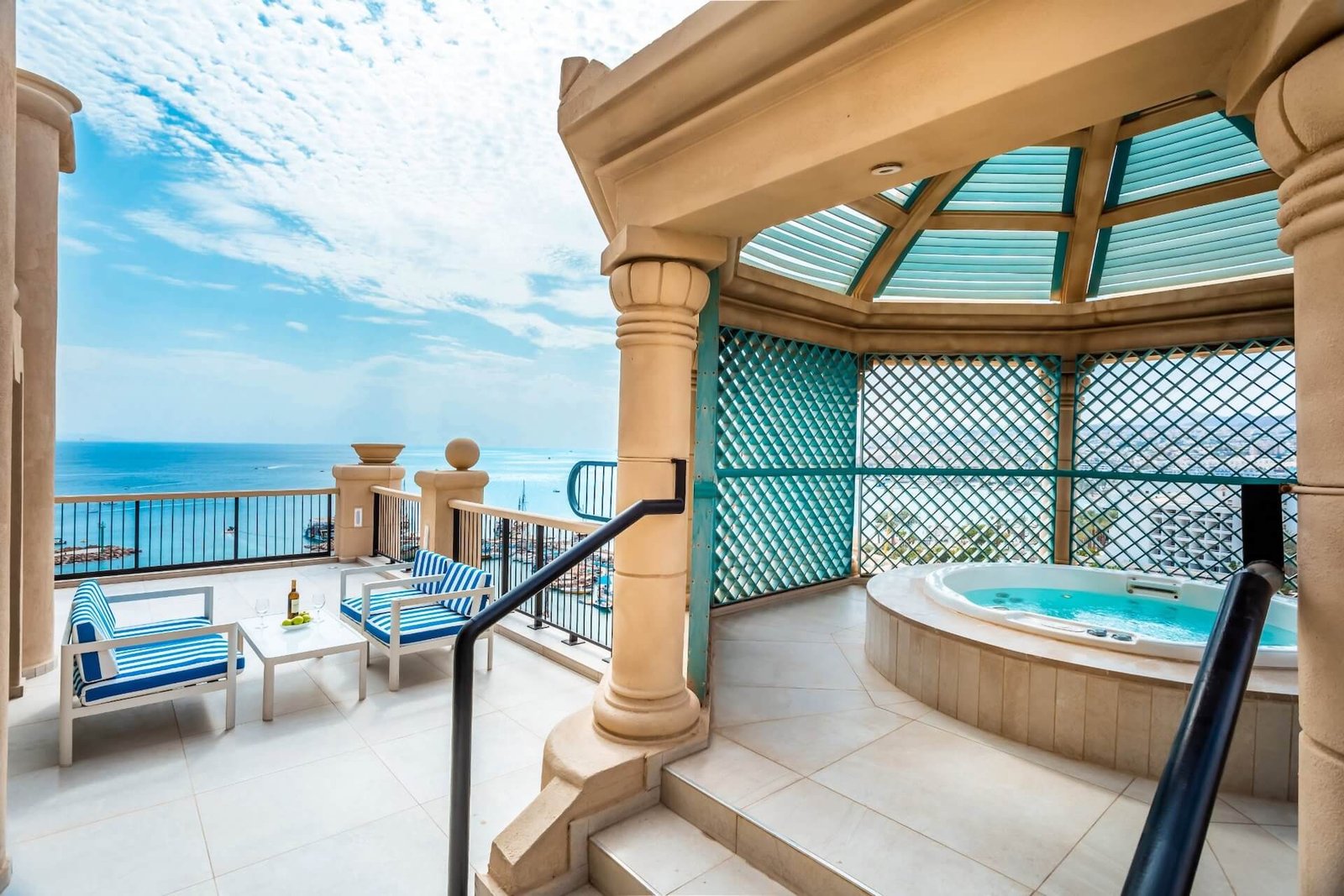 For suite guests, the package includes not only accommodation with all amenities: air conditioning, a 42-inch TV, and a double jacuzzi. The package also includes access to the SKY lounge at Herods Palace Eilat and the spa at Herods Vitalis.
