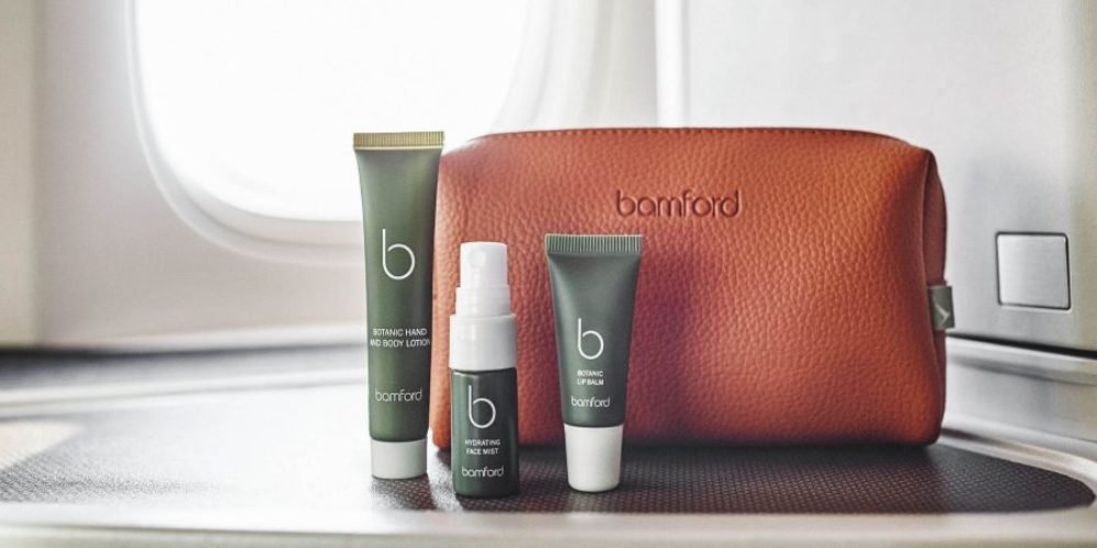 Slippers, a mask, and cotton bedding from Bamford will help you get a good sleep. And a travel set from the same company will help you freshen up. It includes natural care products that protect and nourish the skin during the flight.