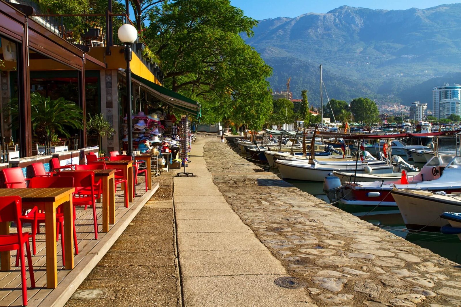 Velvety lawns, bordered with fringes of bright flowers, please the eye. You can spend the evening in one of the open cafes against the backdrop of sea landscapes. From here, excursions are ordered, and a boat (5€) sets off to St. Nicholas Island or the luxurious Sveti Stefan peninsula.