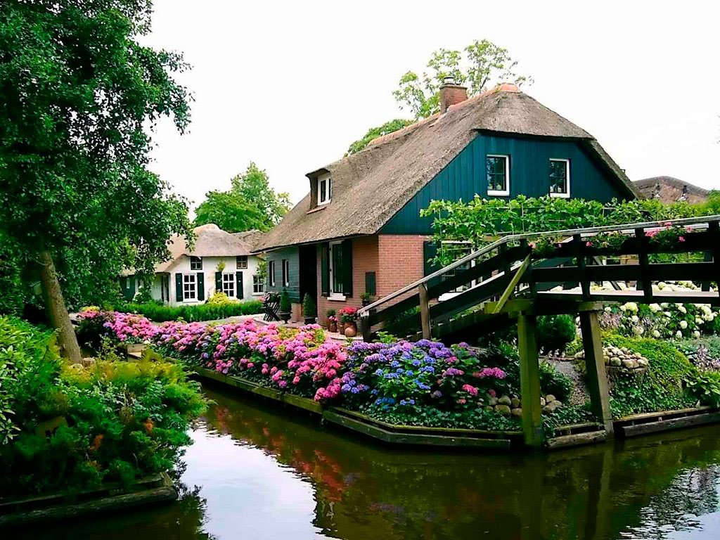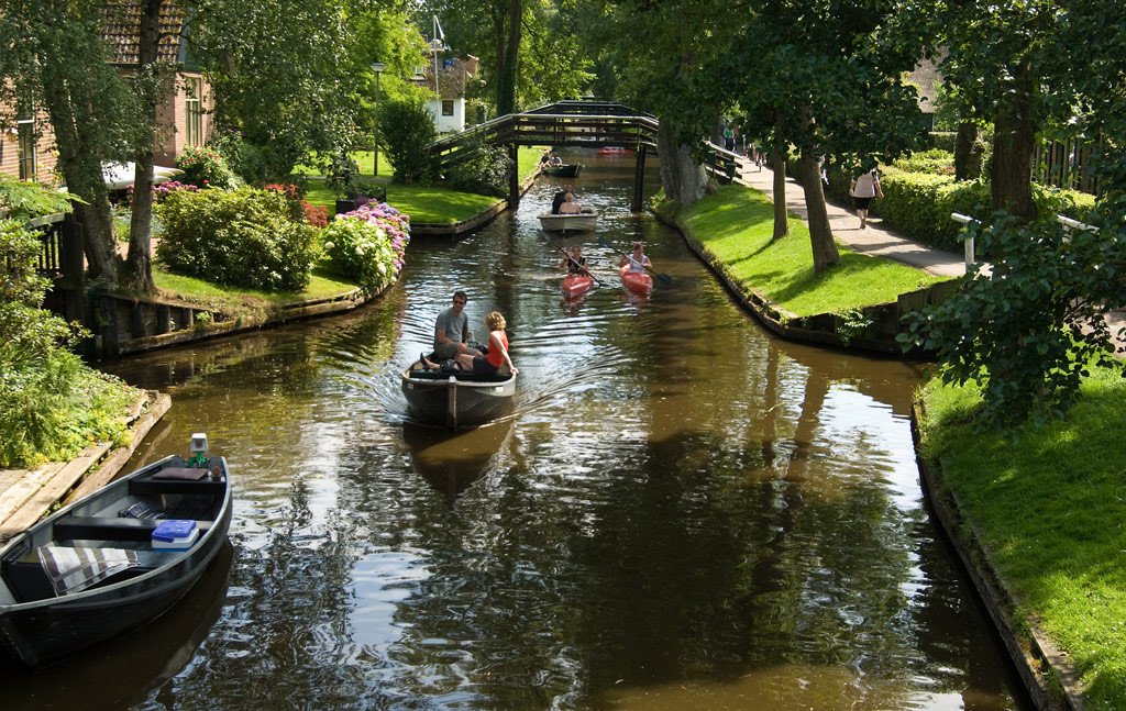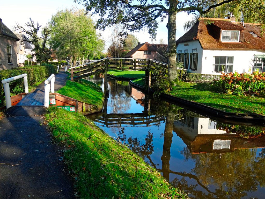 Today, Giethoorn (Overijssel province, northern part of the Netherlands) has approximately 2,600 residents. It is a quiet and cozy place, extremely popular with tourists. The village is very picturesque (like many other Dutch villages), but its special charm comes from the numerous bridges (there are more than 170) and the residents moving around in boats. The bridges are quite arched: this is done specifically so that it is convenient to sail under them.