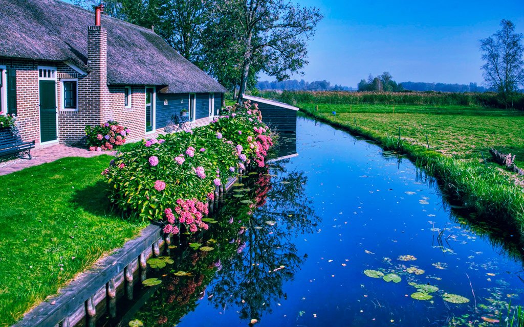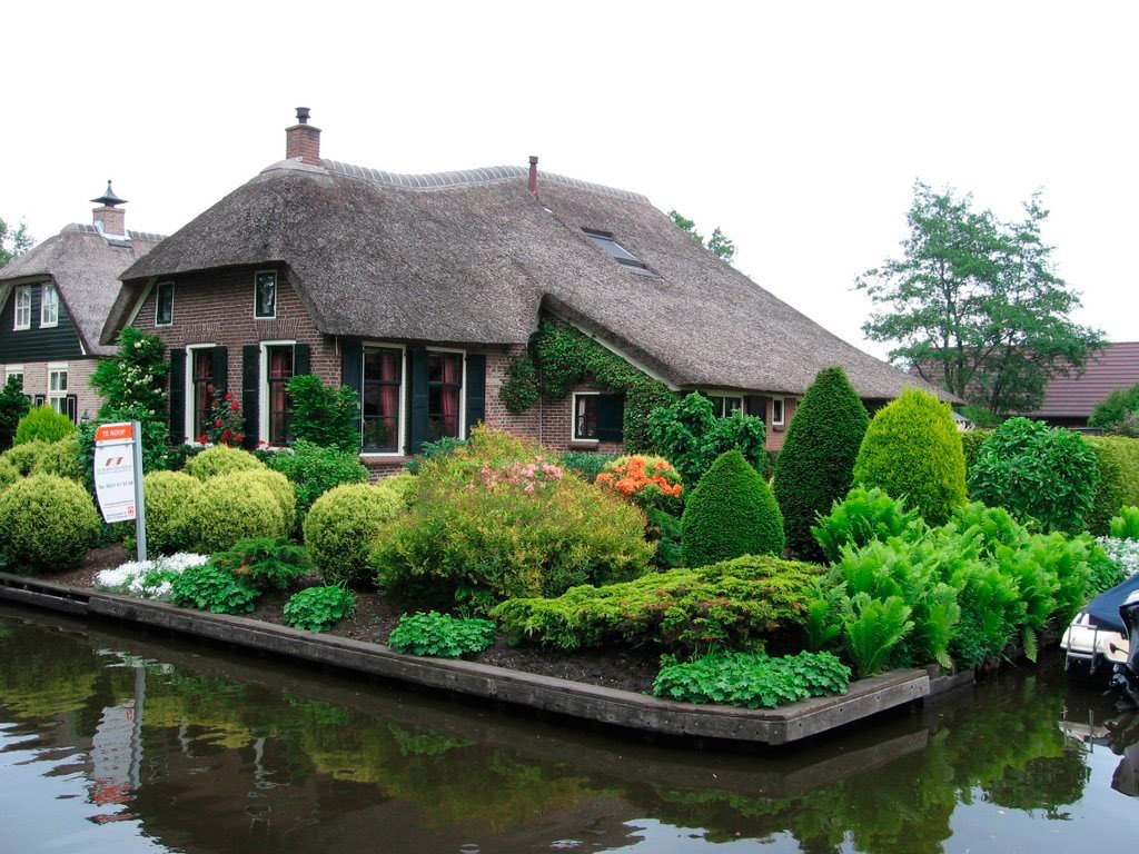 Almost all travelers are delighted with Giethoorn – and not just because of the uniqueness of this place. It feels that the villagers themselves love their small homeland very much. They consider their village the only place in the world where you can be in harmony with yourself and take care of it as best they can. All houses are very well maintained, and flowers and greenery please the eye almost all year round: each homeowner arranges a lawn in front of their house, plants trees and shrubs, and regularly trims them.