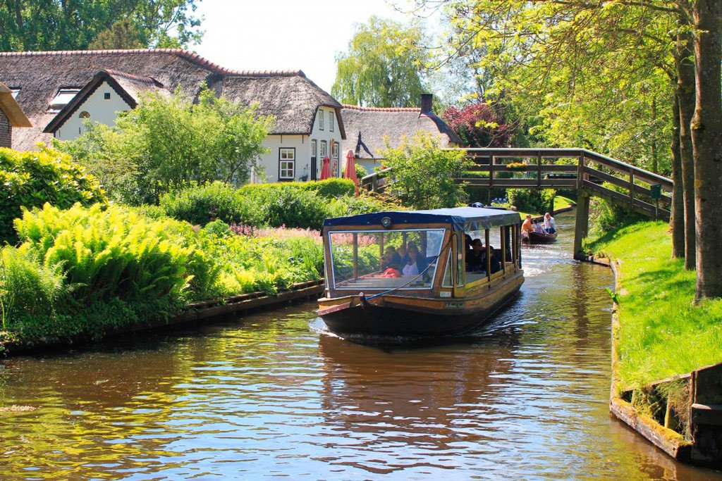 You can get to Giethoorn from Amsterdam by train. The journey takes two and a half hours, with 2 transfers. From the final stop – Steenwijk – a bus goes to the village, and from there – on foot or by boat. By the way, the locals also leave their cars before entering the village: there is a specially made parking lot.