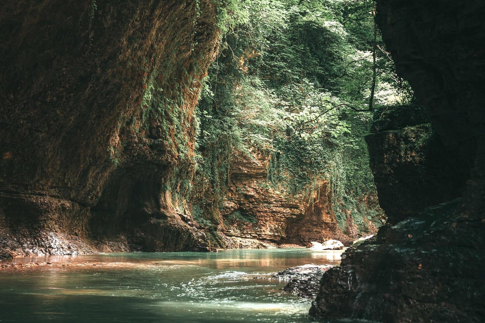During a walk through the canyon, tourists will have the opportunity to see how in some places, rocks “stick out” of the water, sometimes rising above the water body at a height of 30-40 m. The sight is stunning, and photos taken against its background turn out to be somewhat mystical; you would never guess where in the world such captivating beauty can live.