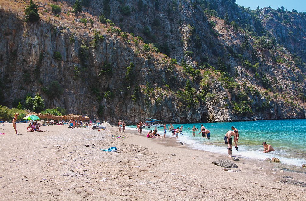 This place is located 11 km south of the center of Oludeniz, and there are only two ways to get here. In the first case, you can buy an excursion to the Valley of Butterflies, and in the second – go here yourself on a regular boat that departs from the pier of the city’s Belchekiz beach. The cost of a round trip is $12-15, and the journey time takes about 30 minutes.