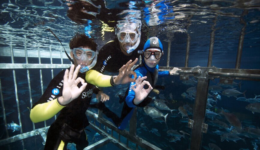 - The most daring visitors can dive into the aquarium with predatory fish and rays. If you are a certified diver, dive on your own. Beginners will have to complete an accelerated training course.