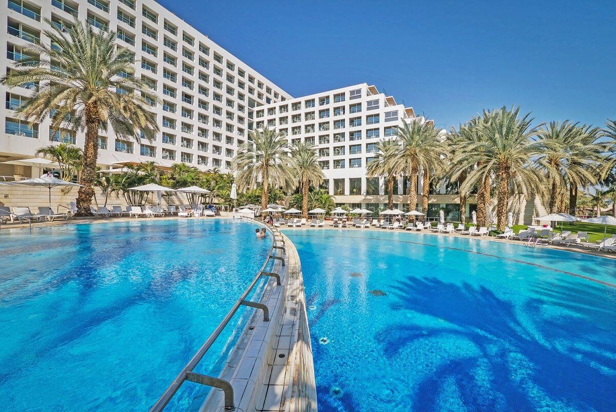 • The stylish Isrotel Dead Sea 5* Spa Hotel is located right on the seashore. The hotel has an outdoor swimming pool, a gym, a children’s playroom, and a restaurant. The SPA center is equipped with a sulfur pool, sauna, steam room, massage rooms. The hotel’s rating is 8.1 points, and the price of a double room per night starts from NIS 600.