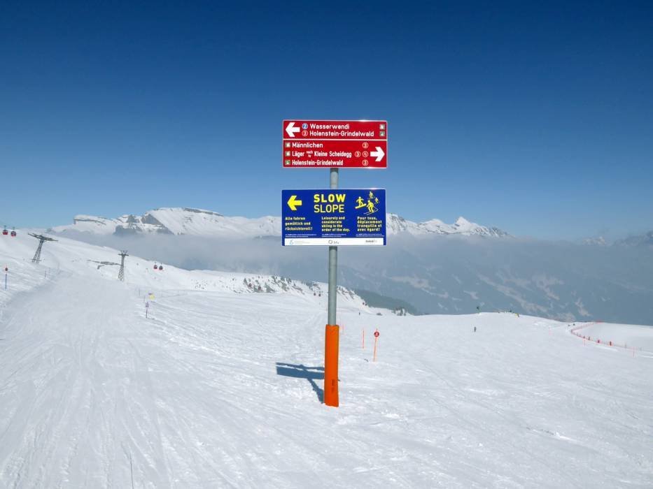 Slow Slope. These trails are designed for a slow descent, the speed of which should not exceed 30 km/h. These routes are located in the Grindelwald-First zone and marked with appropriate markers.