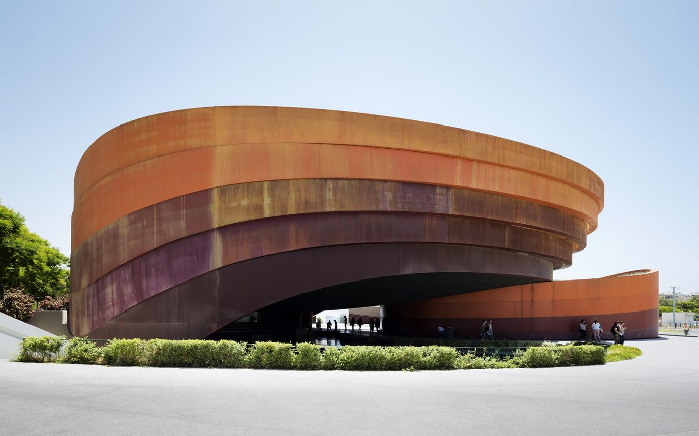 The building turned out to be symbolic and recognizable-it is wrapped with five ribbons that symbolize flowers that grow in the desert. Visually, the “ribbons” resemble a Mobius strip, as well as layers of geological rocks in the desert. The exhibition is located in two galleries. The collection is presented in four thematic areas: