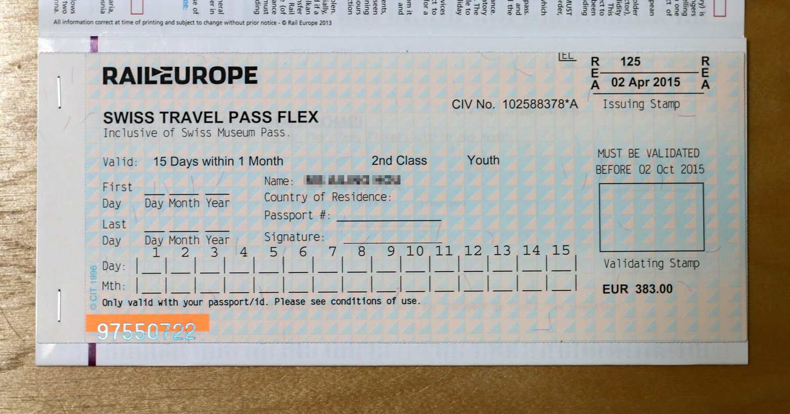 Price of the Swiss Travel Pass Flex: