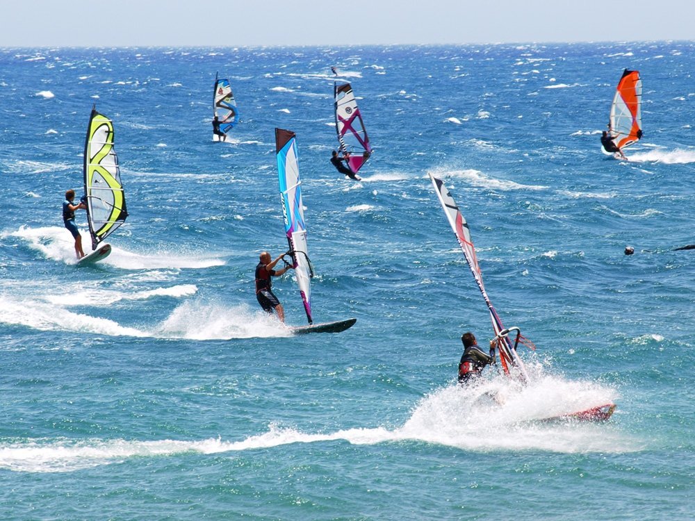 Such weather conditions are indispensable only for athletes who specially come to the west coast of Rhodes. There are windsurfing and kitesurfing centers at Ialyssos Beach in Rhodes. Beginners can use the services of experienced instructors.