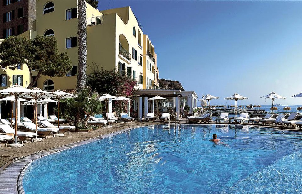 Combining Old World elegance with modern style, L’Albergo Della Regina Isabella on the island of Ischia has been hosting famous guests such as Richard Burton, Elizabeth Taylor, and Clark Gable in its picturesque paradise since the 1950s. Experience the charm of this five-star hotel located in a quiet bay in Lacco Ameno. Here, you will find exquisite rooms, chic sea views, as well as first-class restaurants and amenities such as a spa center with a geothermal pool and mud baths, two private beaches, a gym, tennis courts, and swimming pools.