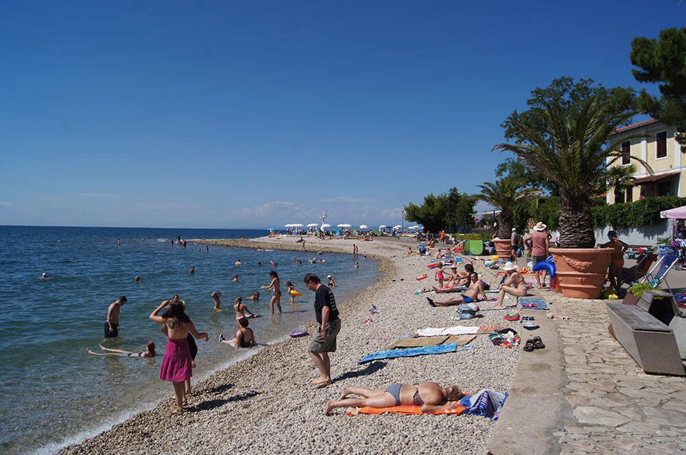It is considered to be the best in the city. It is located within walking distance from the center of Izola. Its advantage is the lower number of tourists, and therefore more free space. There is a park near the beach. This proximity allows you to either enjoy the sun on the beach or relax in the shade of the trees during the hottest part of the day. Photos of the beaches of Izola, Slovenia, confirm its extraordinary beauty.