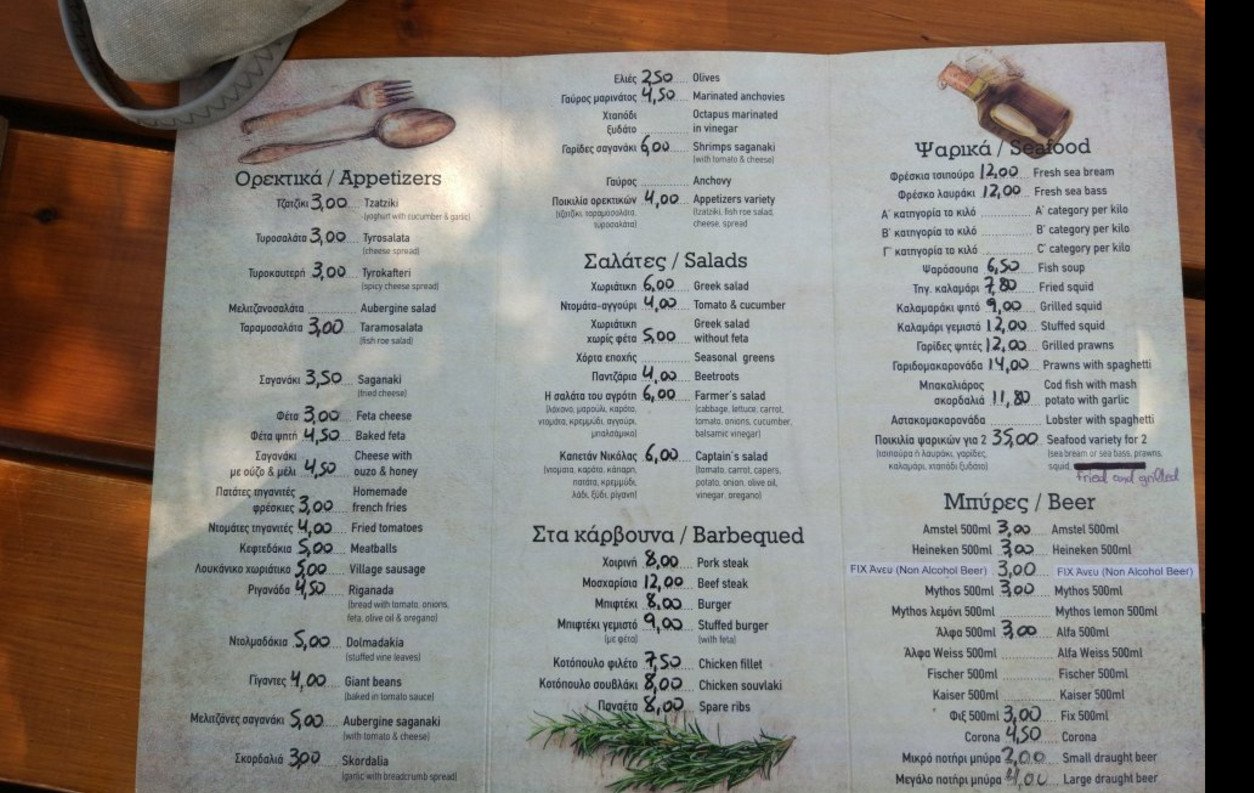 The choice of food establishments on the island is great. The cost of meals in restaurants is significantly different: you can have lunch together for 10€, and you can have dinner for 80€.