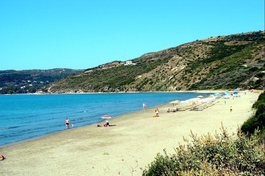 The shore and bottom are covered with white pebbles, the water is crystal clear, azure and warm. The beach stretches for 700 meters, is located 27 km from the island’s capital. It is stunningly beautiful by nature-there are hills with green vegetation all around, and the sea changes its color from blue to turquoise. Antisamos was awarded the Blue Flag.