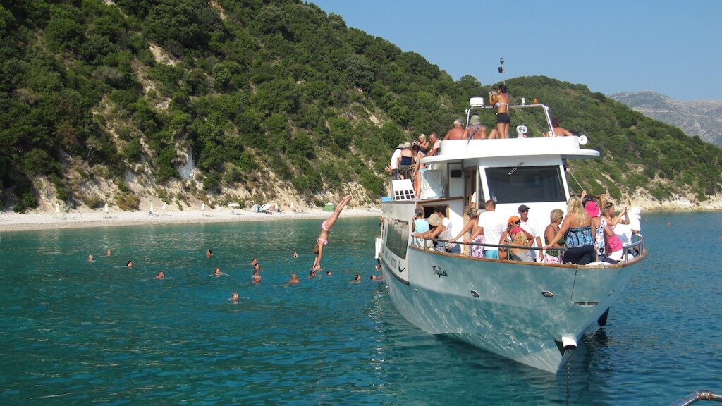 One of the most famous and visited boat tours is Captain Vangelis Special Cruises. This is a one-day trip (about 7-8 hours) to charming Ithaca, Fiscardo or colorful Zakynthos with the famous bay of Navayo. The large, state-of-the-art ship accommodates 40 tourists and a team of professionals who serve visitors and conduct guided tours. During the trip, there are several stops – be sure to visit the picturesque caves, the Odyssey monument, beaches, souvenir shops and cafes. In addition, the ship has a huge advantage-a glass bottom, which allows you to admire the view of underwater nature. This trip will appeal to both adults and children.