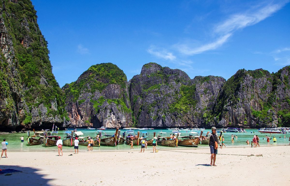 The main interest is the bay of Maya Bay, which became famous thanks to the film “The Beach”. The attraction is a beach covered with white sand and surrounded by stone cliffs and picturesque coral reefs.