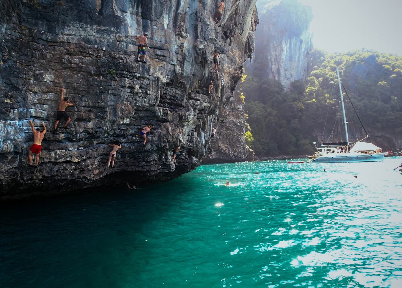 The most famous entertainment – Deep Water Solo-everyone is taken out to sea, right from the boat you need to climb on a rock and jump into the water.