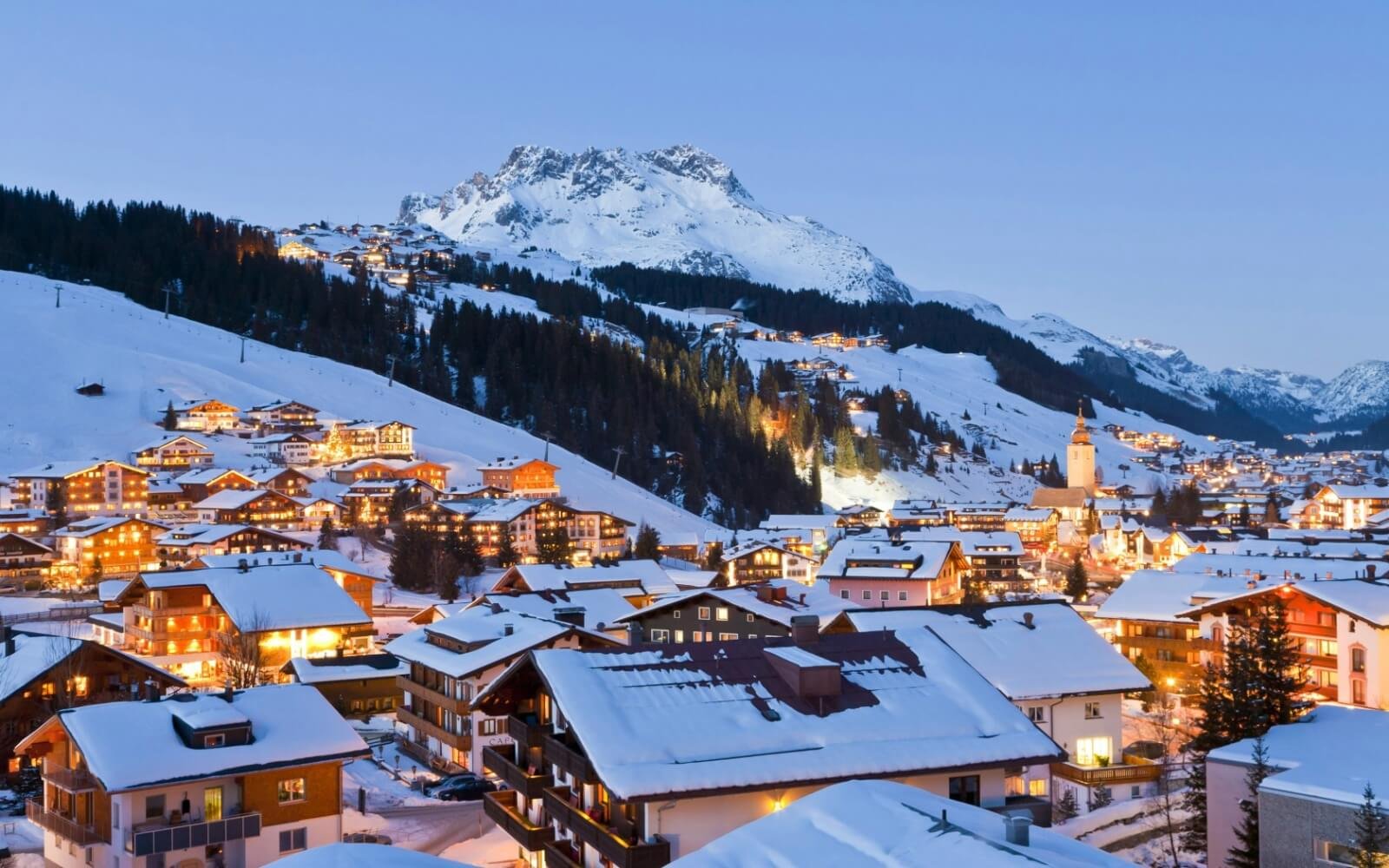 Lech, Austria is a ski resort where royal and bohemian people prefer to relax. Noisy parties are not held here, so people come here to ski, enjoy nature and feel the taste of luxury.