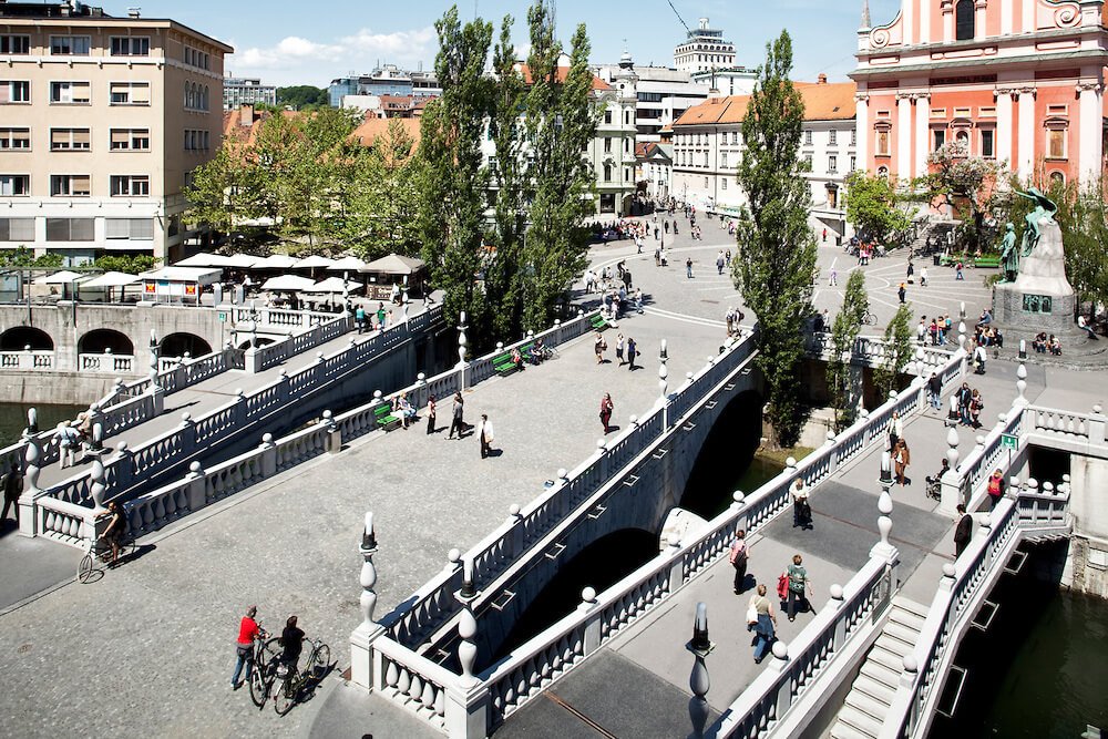 Moving further along the square, we reach the next point on our route, the Triple Bridge.