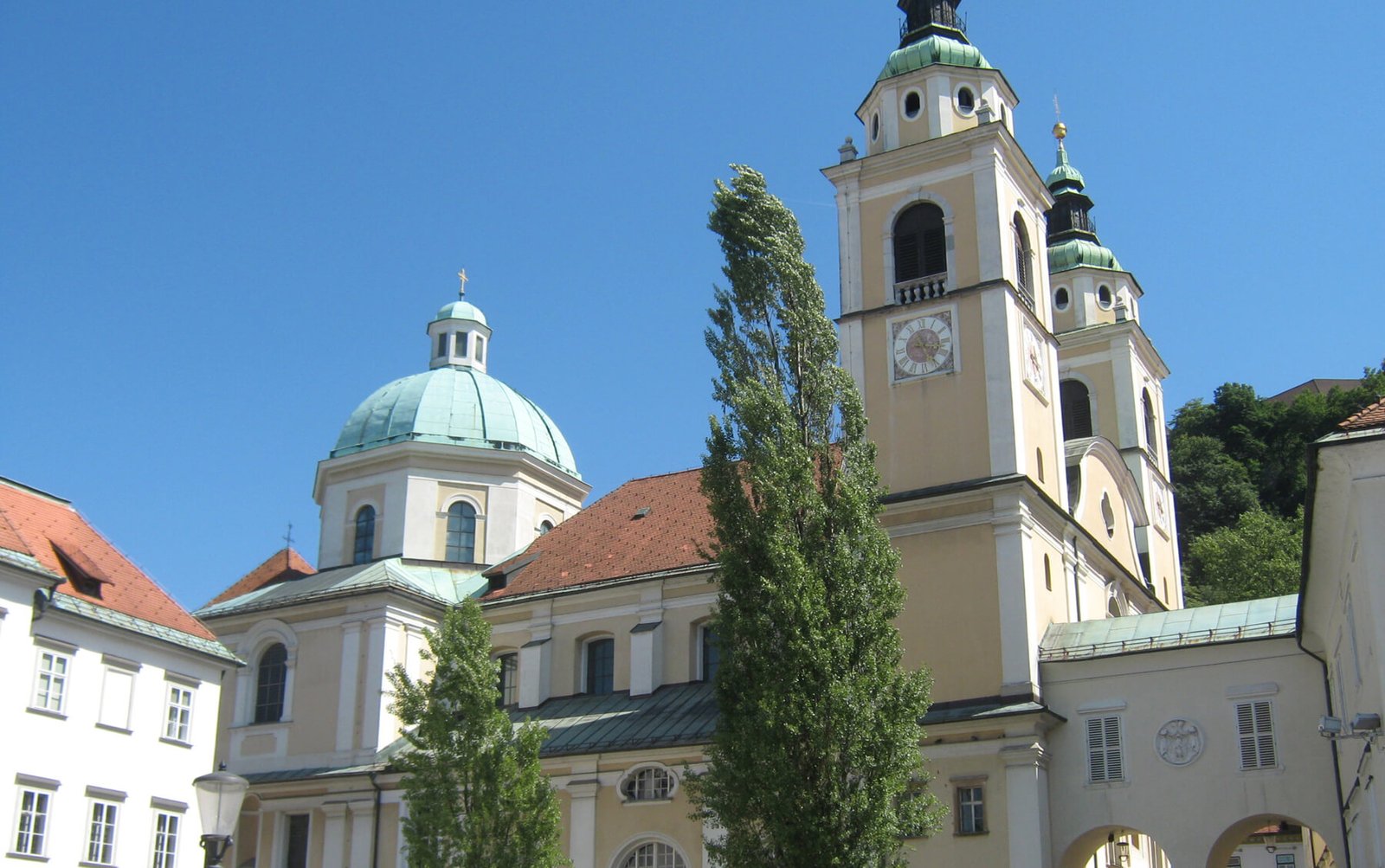 When planning what to see in Ljubljana, you can not leave without attention the active Cathedral of St. Nicholas – it is located at Dolnicharjeva ulica 1, very close to the Central City Square. The Cathedral, built in the ХVIII century, stands on the same place where there was once an ancient Romanesque church.