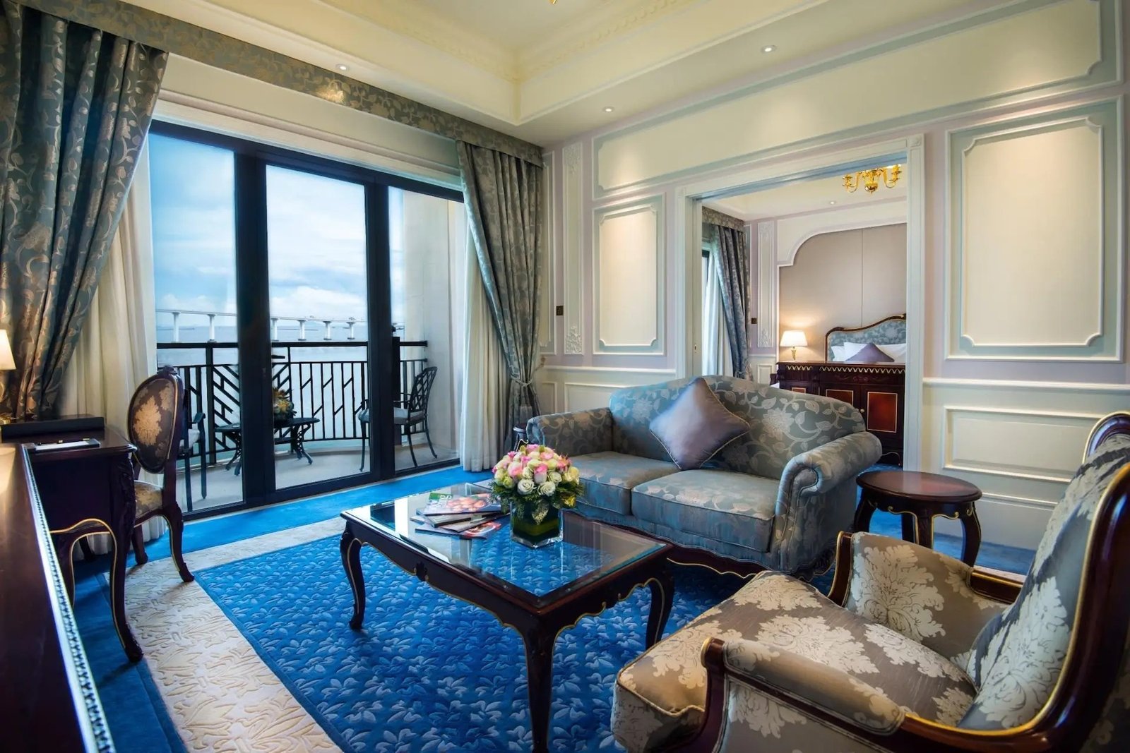 The windows offer a beautiful panoramic view of the Macau Peninsula and the sea. The casino has 220 gaming tables and 550 slot machines. Guests have access to a spa, an indoor infinity pool, a fitness room, and a business center. The luxurious setting plus unobtrusive service makes for an ideal vacation. The hotel often runs promotions, offering pleasant bonuses for visiting entertainment programs, restaurants, and the spa.