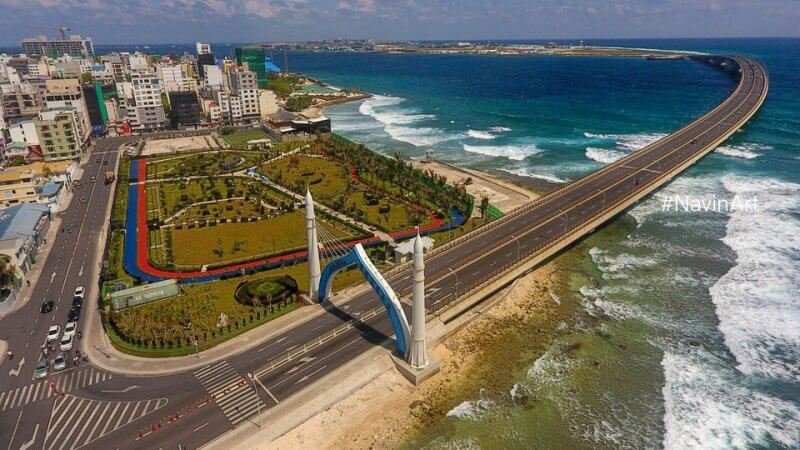 • The construction of the bridge from Male to the airport island and Hulhumale island lasted 33 months. The total cost of the project was $200 million. During construction, the bridge’s name was the China-Maldives Friendship Bridge. In 2017, a competition was announced for a new name with these requirements: up to 9 letters long, easy to pronounce, melodious, and combining the names “Maldives and China.” As a result, the bridge was named Sinamale.