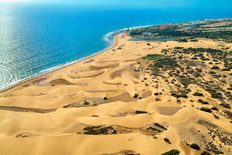 Maspalomas, Gran Canaria is one of the most visited resorts on the island. It is known for its picturesque dunes and a large number of green areas. There are almost no historical attractions here, so you should go here for those who love a beach holiday.