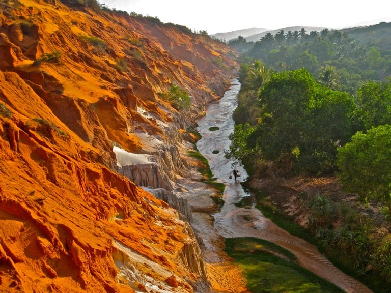 A small muddy stream that flows through the canyon, among the red sand hills. In the deepest part of it, you will be below the knee. It’s not as hot here as on the coast, and the treetops will hide you in the shade. In addition, the place is picturesque, the photos are amazing. You can turn off and look at the fish sauce factory.