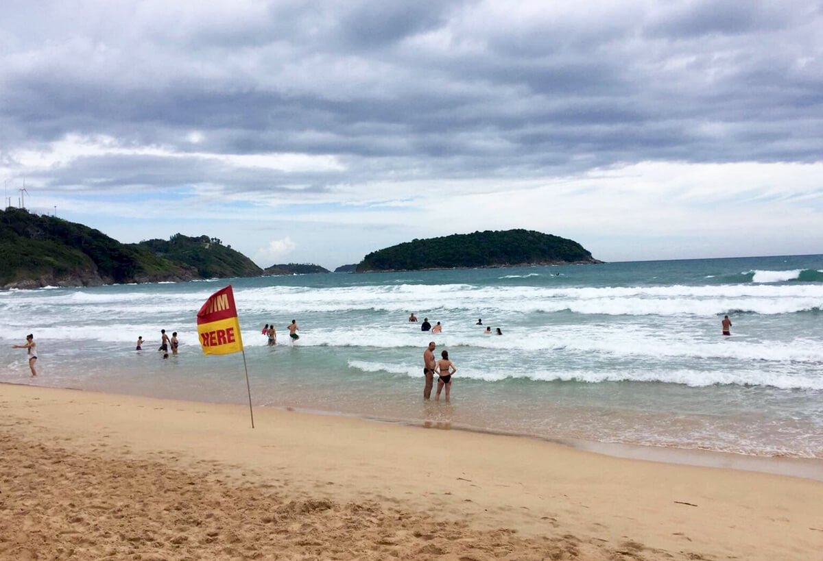 On a note! There are reverse rip currents on Nai Harn Beach. That is why a rescue team works here, and places that are prohibited for swimming are marked with red flags with the inscription “Swim here”.