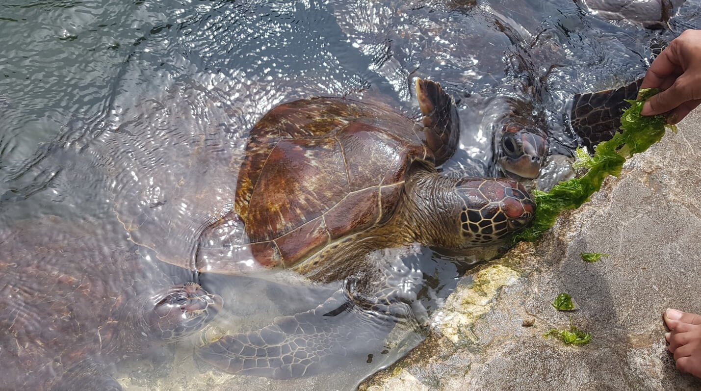 Mnarani Marine Turtles has nursery aquariums with small turtles and slightly grown ones, as well as a natural lagoon with adult turtles. In this reservoir, they are allowed to swim with turtles and feed them cabbage and seaweed, which employees give out on the spot.