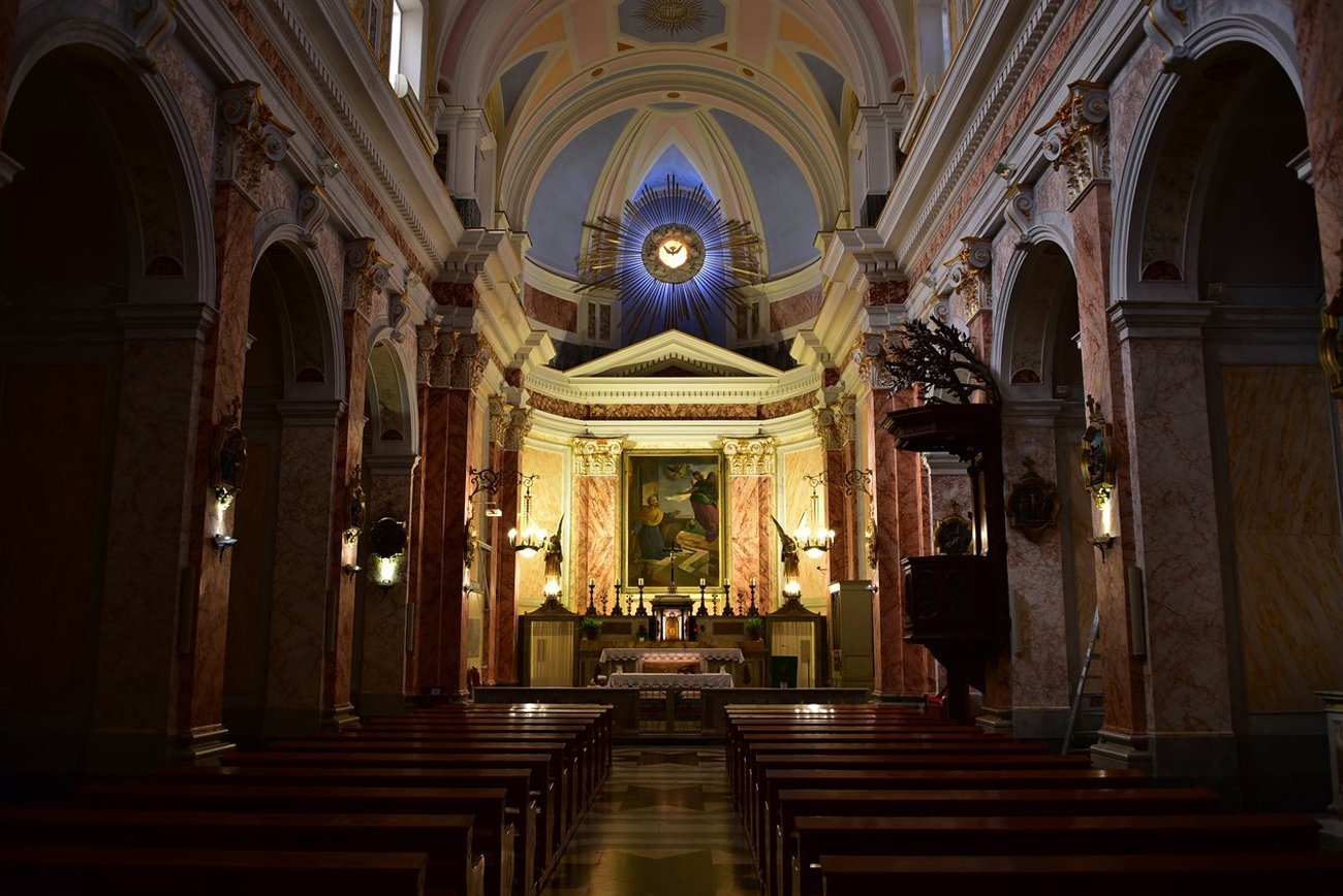 The interior of the church is very beautiful: a high vaulted ceiling, walls with marble cladding and beautiful panels, stained glass windows depicting the most important moments from the life of the Apostle Peter, a unique carved pulpit in the form of a tree.