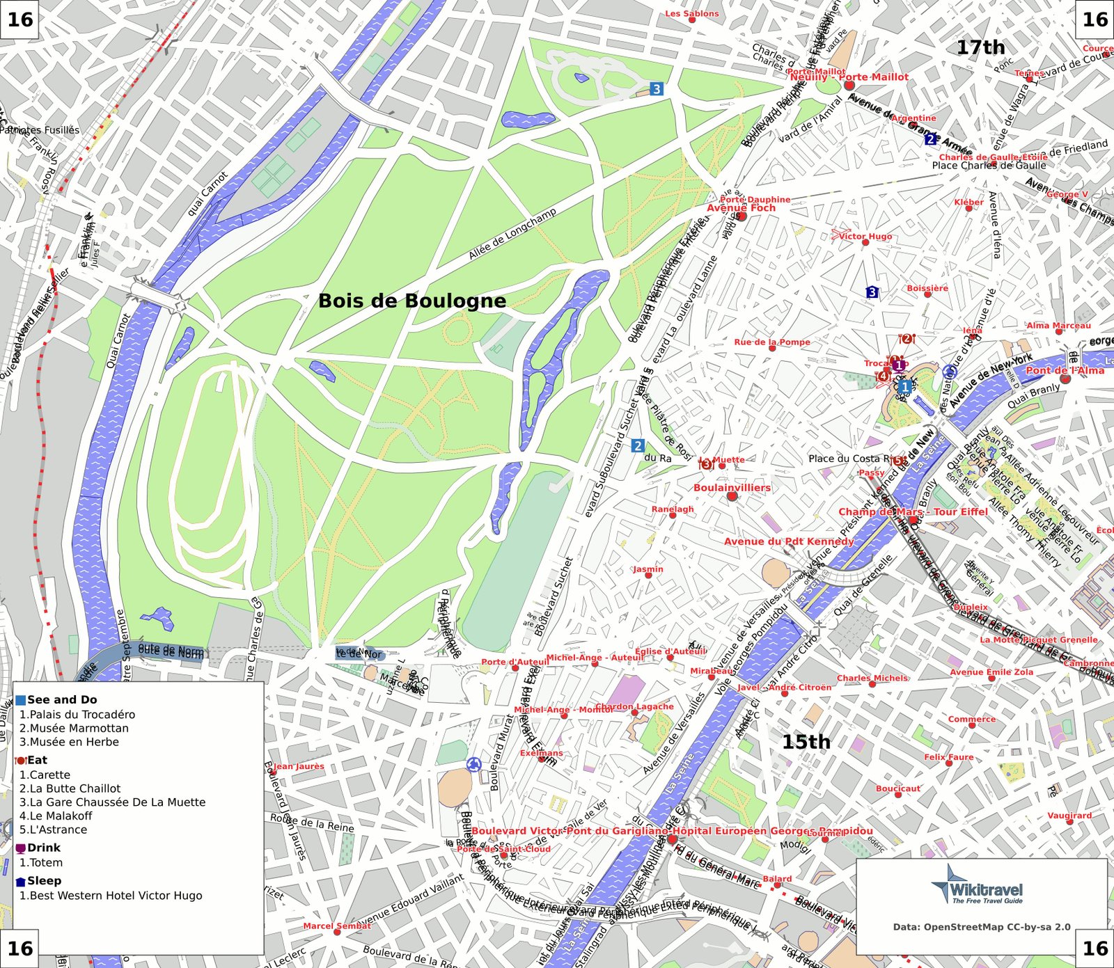 This area is also one of the most expensive, presentable, and best neighborhoods in Paris. The area has a convenient location and a well-organized transport interchange – this is important, because you will have to get to popular tourist places by public transport. But there are quite a lot of picturesque places for walking: the Bois de Boulogne, the Passi Park, the Auteuil greenhouse garden, the Trocadero gardens.